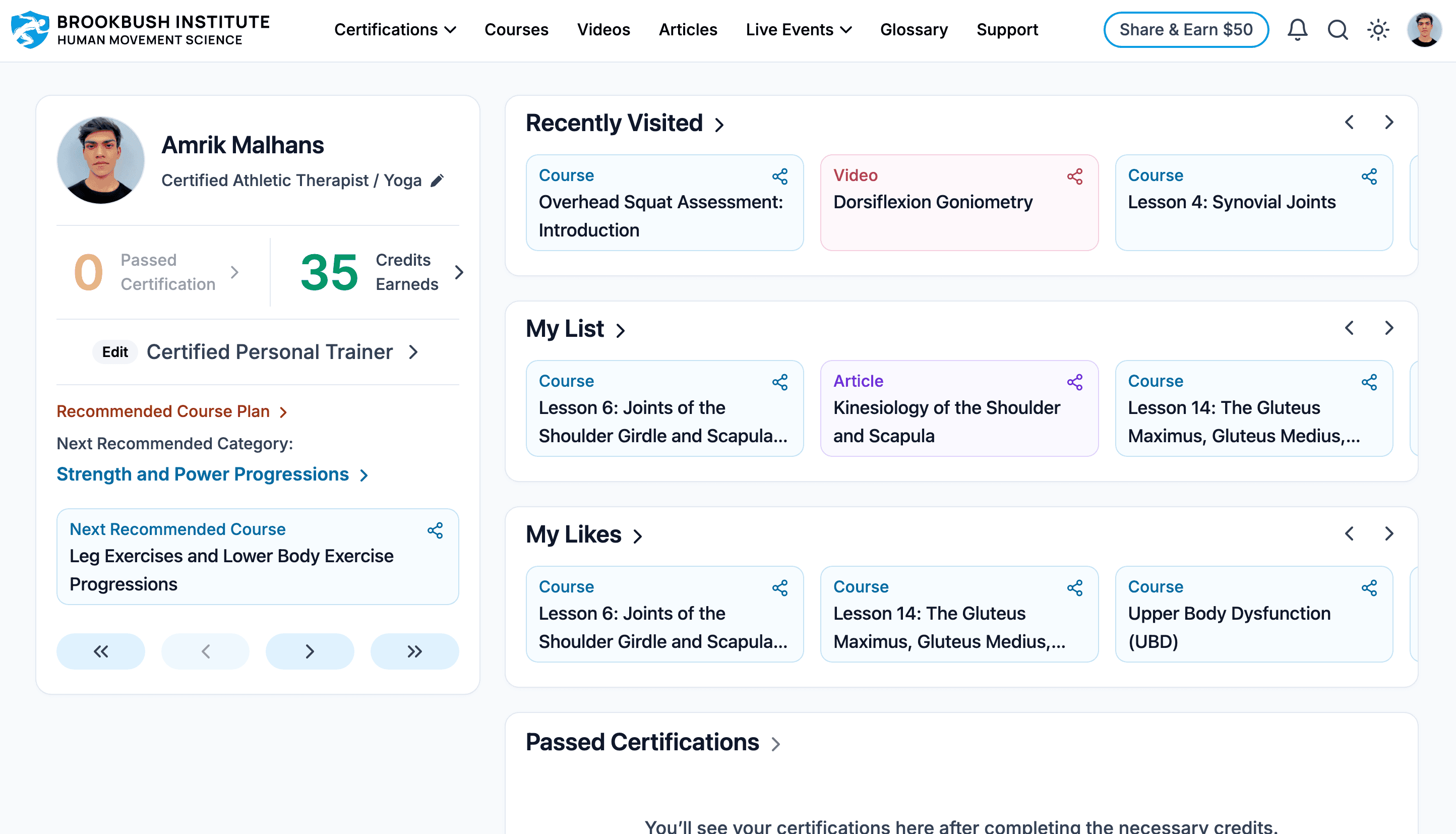 I have my personal trainer certificate through here and am almost finished my human movement specialist certification. Overall, the education that Brookbush has packaged together for clinicians and trainers is invaluable. I am a physio assistant so coming from more of a rehab background I appreciate that this education has been beneficial both as a trainer and in a rehab setting. I love that I have been able to do all learning at my own pace and able to work around my schedule. Thank you for setting up this platform! Highly recommend :)
